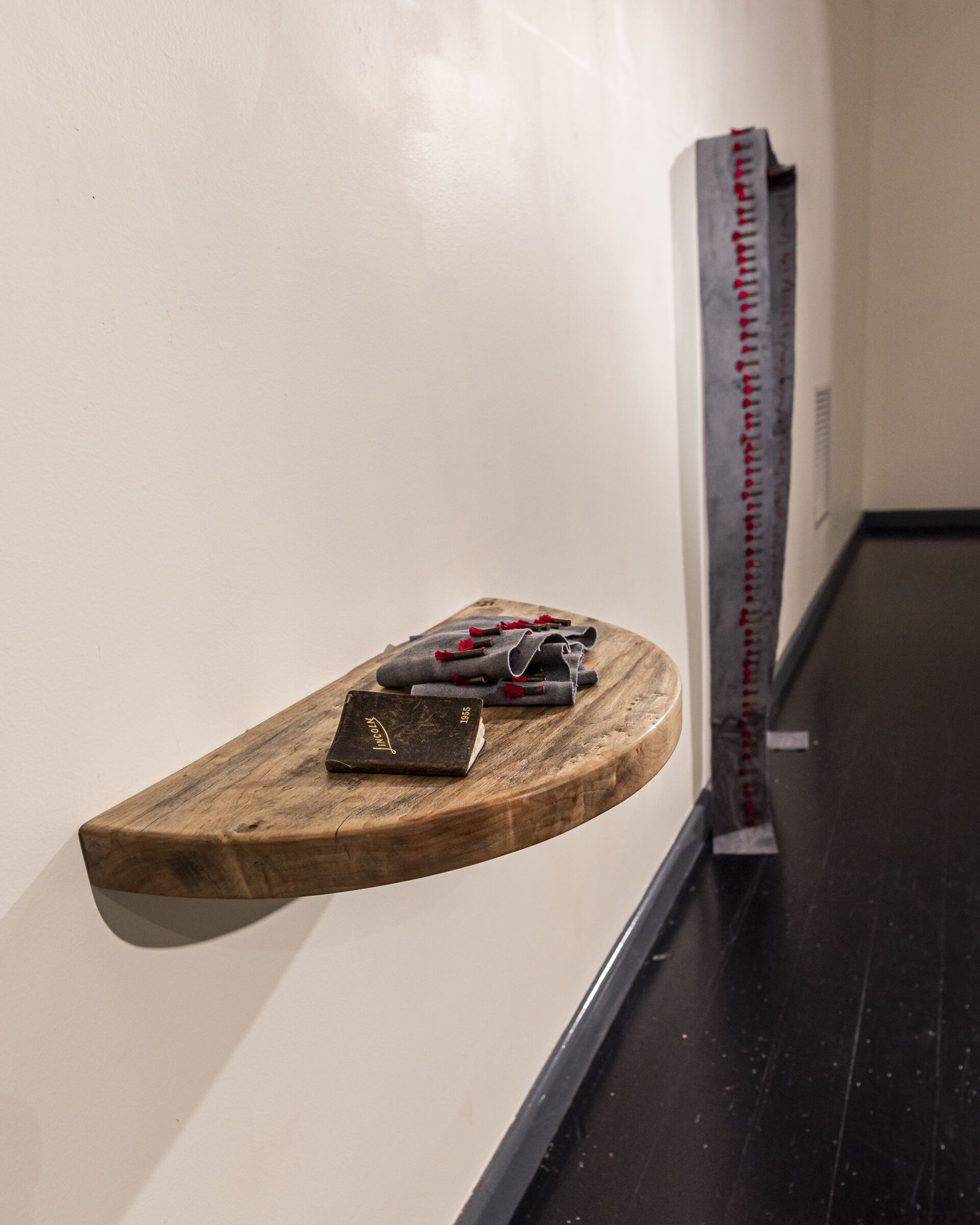 In Second Skin and 28 April we are invited into the domestic, daily reality of living with scarcity, Fife uses specific entries from her father’s diary written in 1955. Treated as an account book, each day is a record of how many rabbits were trapped and a tally of earnings. Substituting rabbit skins for wool and cotton, Fife draws upon this time with a sense of warmth and comfort, reflecting on how this work kept the family together, warm and fed. Photo credit Tim Rosenthal