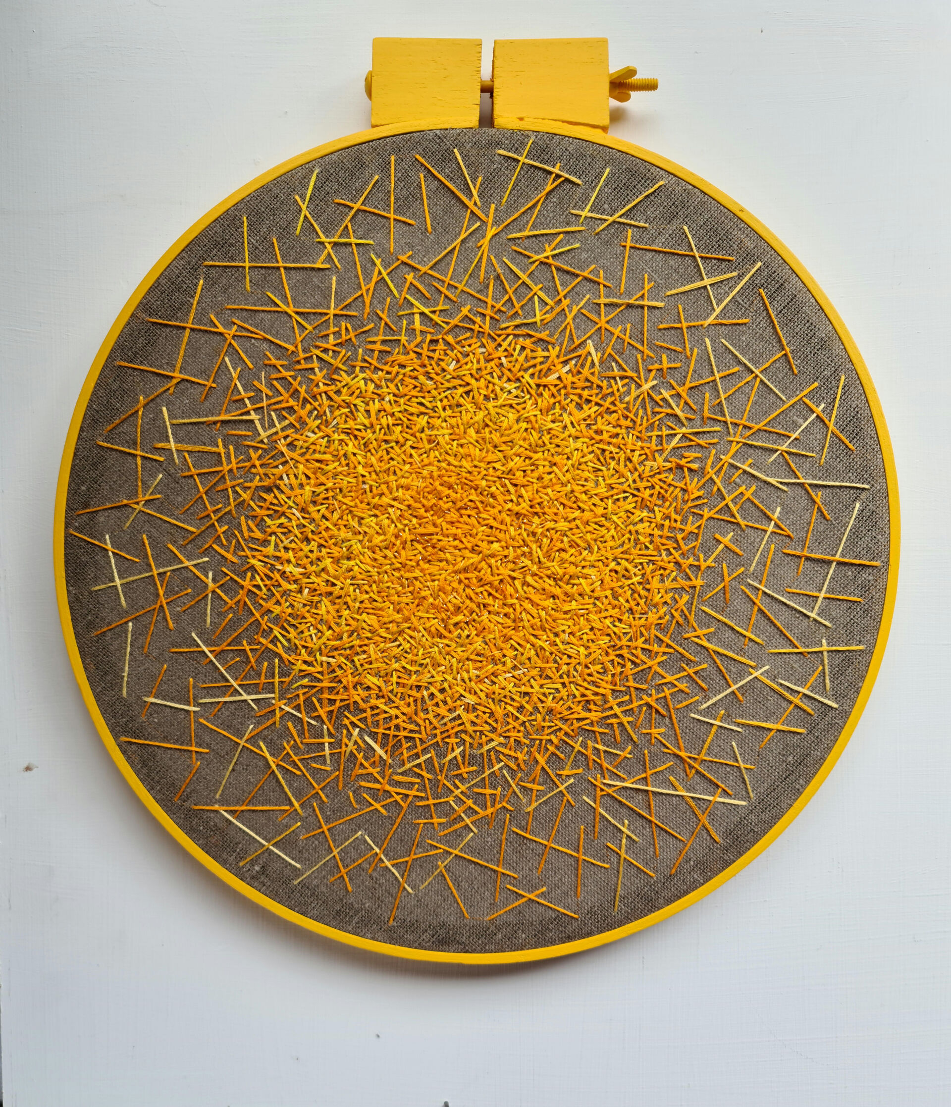 Hand stitched, cotton threads, linen fabric