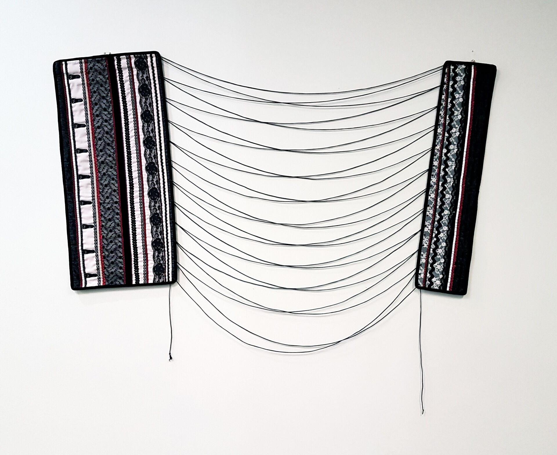Pieced, cotton, lace and mixed materials, metal eyelets. Dimensions variable